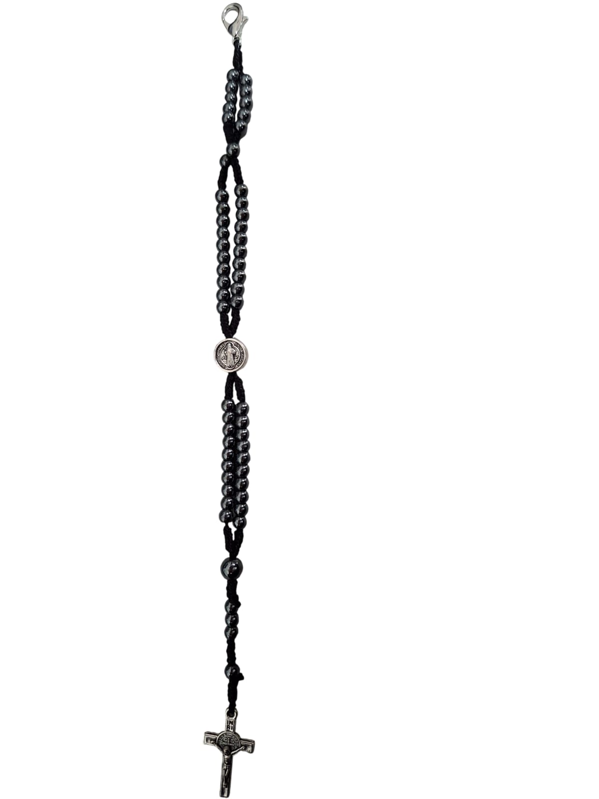 Praticidade e espiritualidade unidas em um terço de pulso feito em pedras de hematita. Ideal para quem busca um acessório religioso compacto e resistente para uso diário.